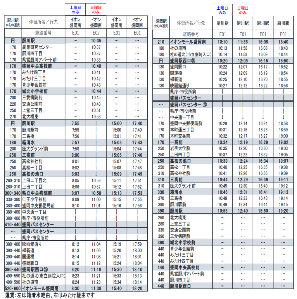 ※急な車両変更などで上記のダイヤで運行できない場合がございます。あらかじめご了承ください。