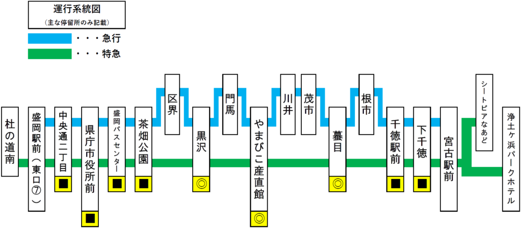 ●宮古駅前~シートピアなあど間はノンストップです。