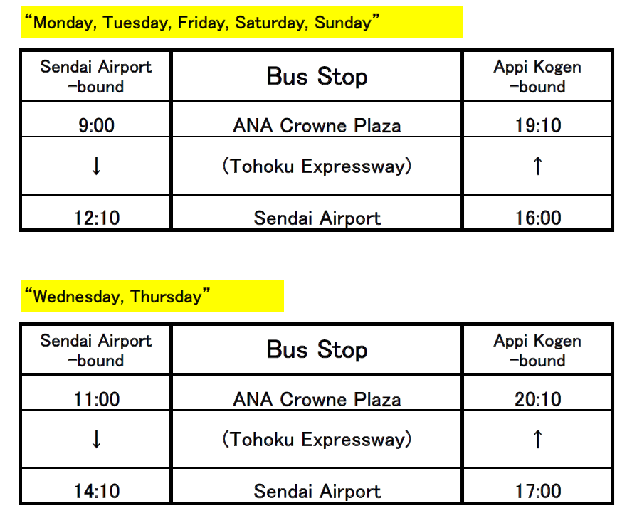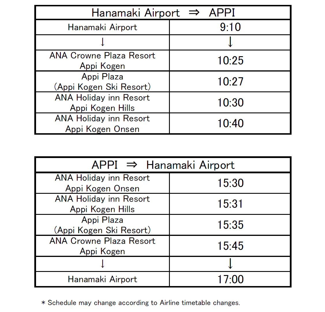 Iwate Hanamaki Airport ⇔ APPI Bus Timetable