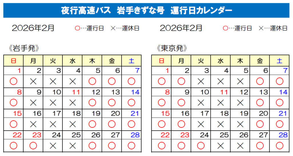 ◆12月・1月の運行日は下記のカレンダーをご参照ください。