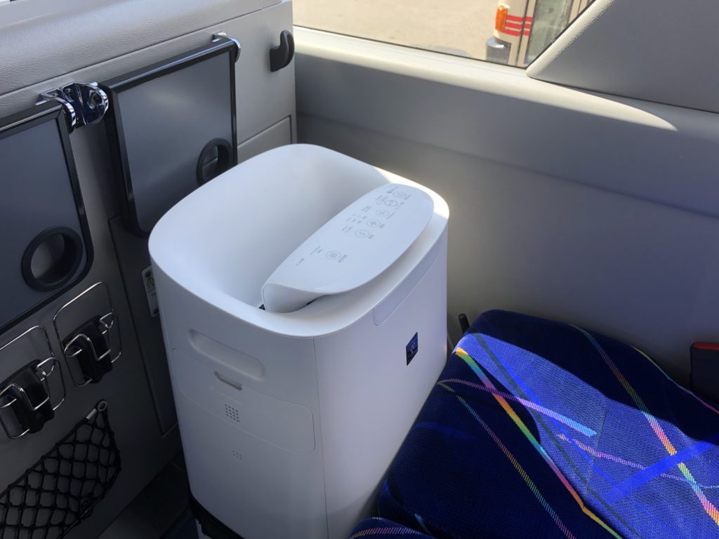 車内空間の浄化対策として全車両にシャープ製プラズマクラスター*イオン発生装置を設置いたしました。この装置にはウイルスを破壊し不活化する効果が認められています(シャープ株式会社HPによる)。