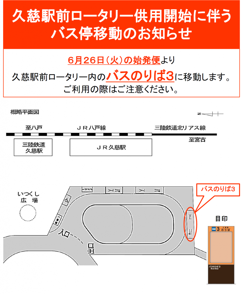 久慈駅前のりば変更のお知らせ(H30.6.26~)