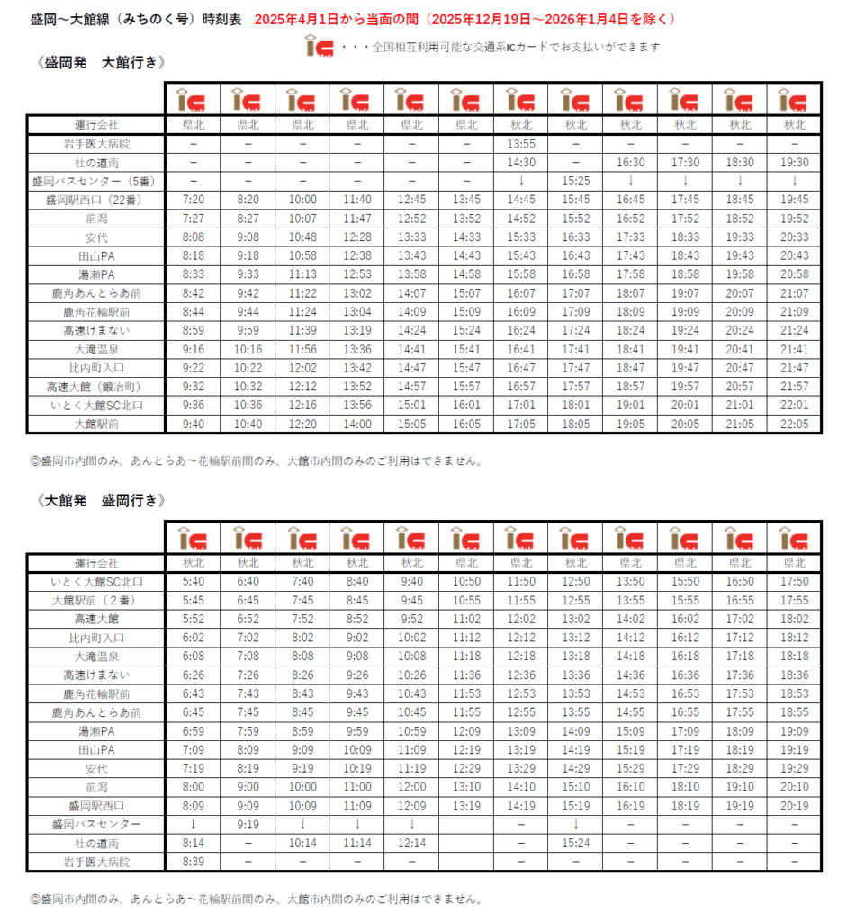 ▼盛岡~大館線(みちのく号)(2025.12/4更新)