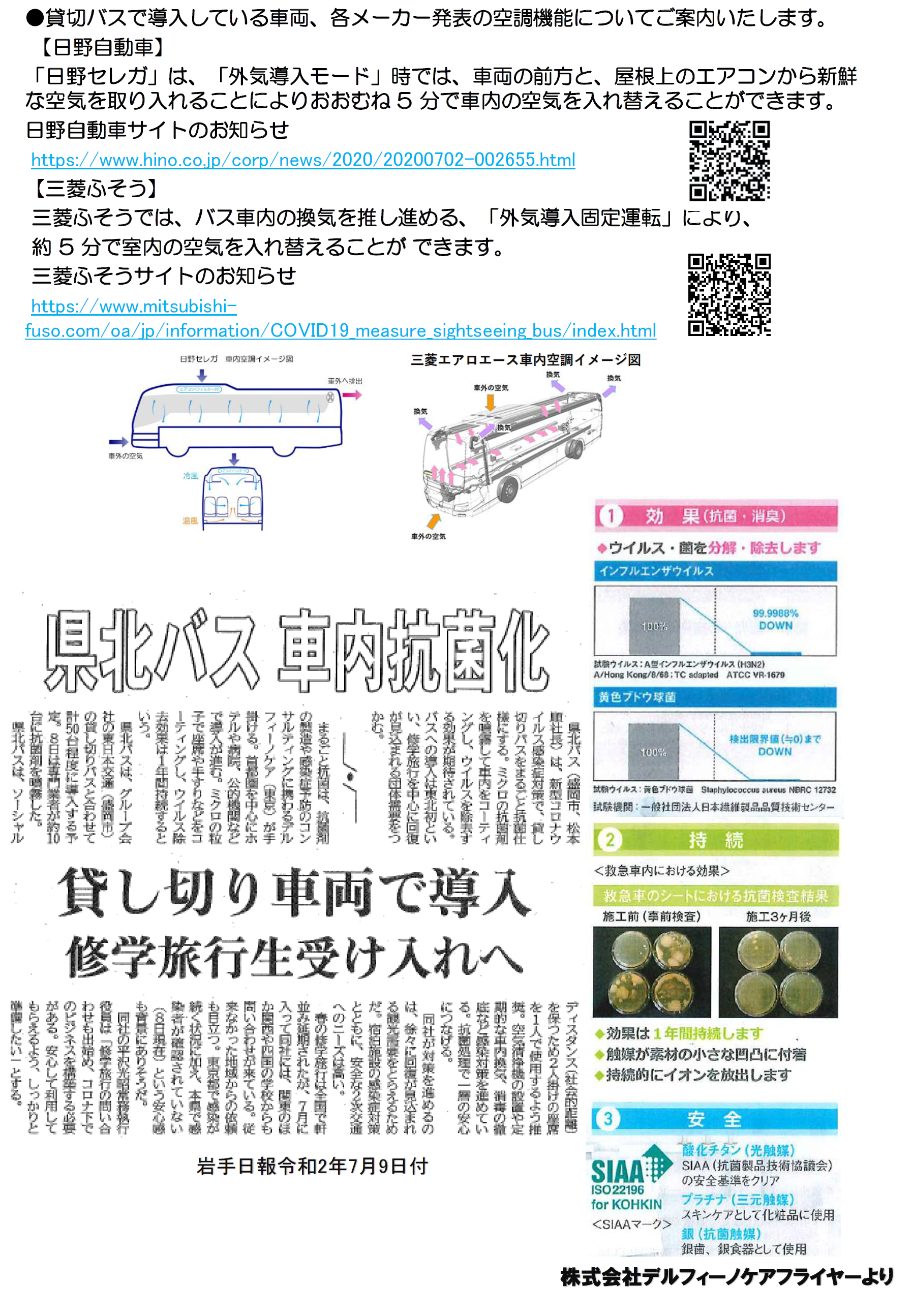 ホーム貸切バス貸切バスにおける新型コロナウイルス対策について