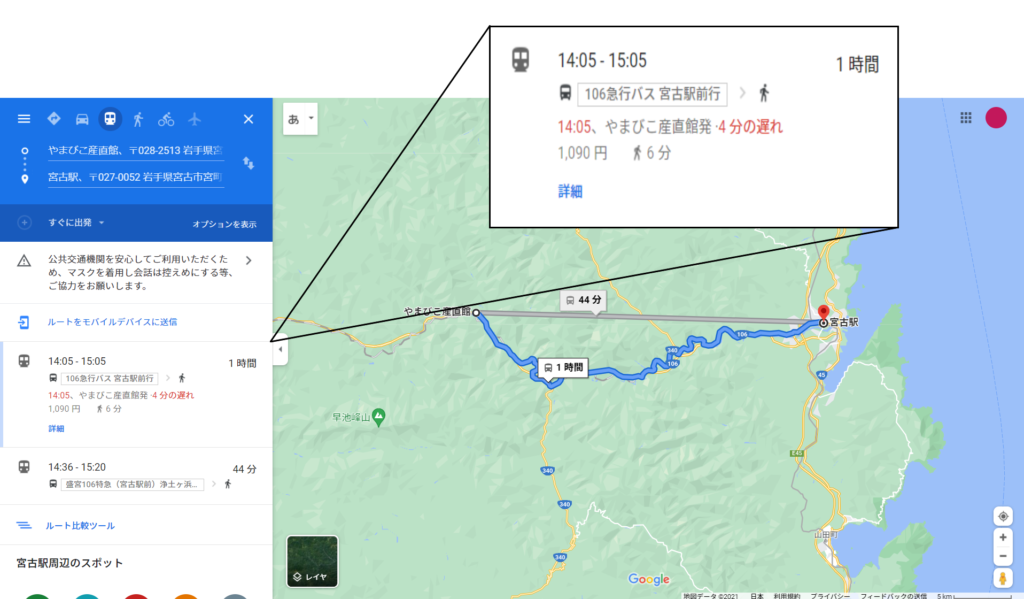 Googleマップで路線バスや高速バスの時刻情報や遅延情報が表示されるようになりました