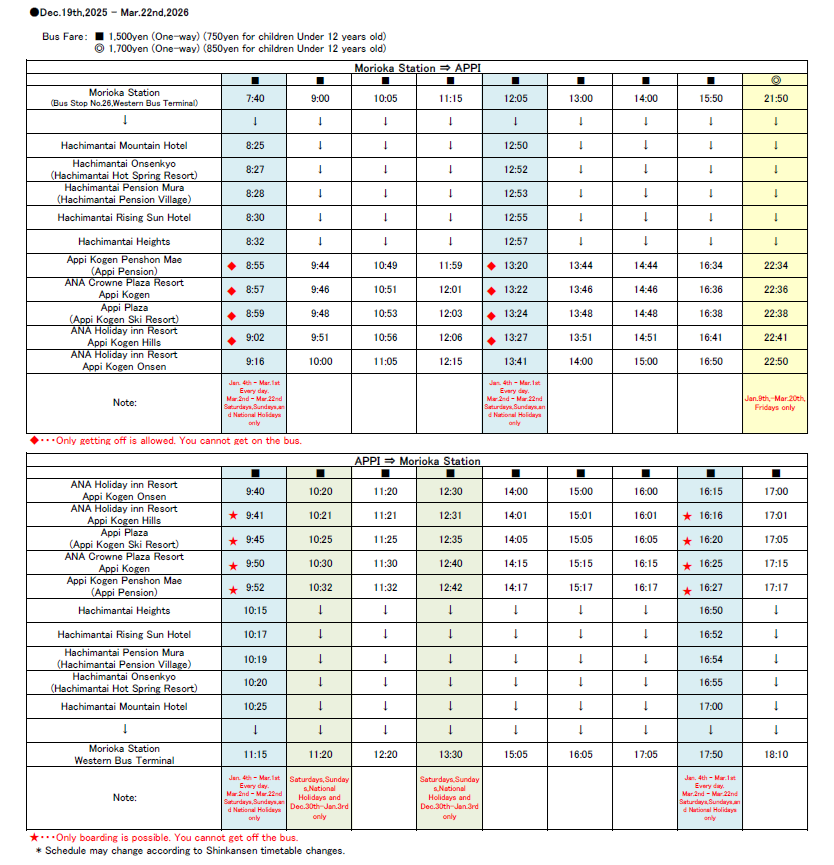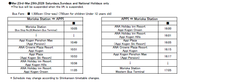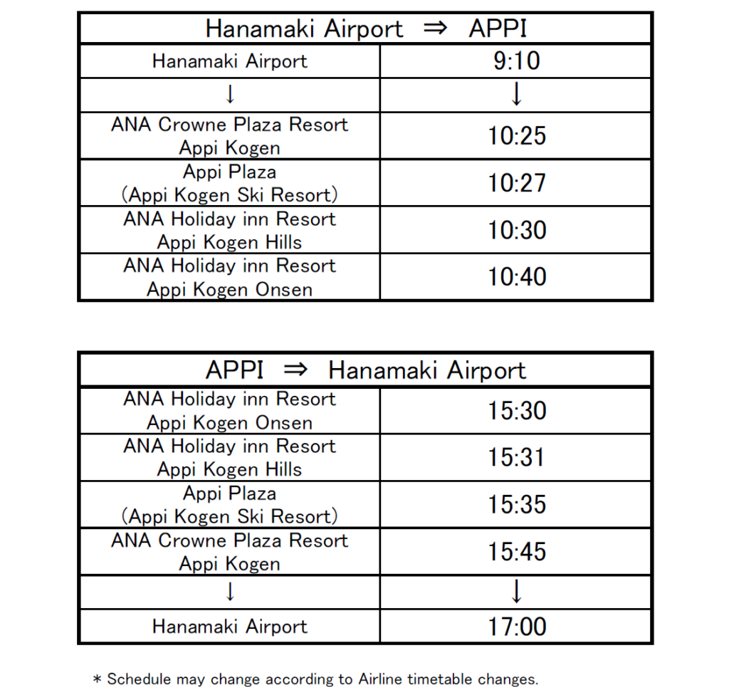 Iwate Hanamaki Airport ⇔ APPI Bus Timetable