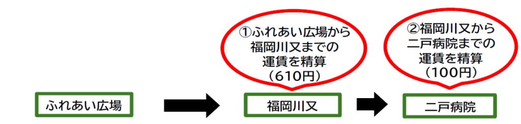 ※乗り継ぎ精算の場合、福岡川又~二戸病院間の運賃は100円です。