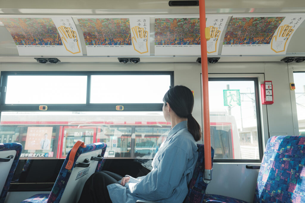 当社は、株式会社ヘラルボニーと岩手銀行が共に推進する本プロジェクトに賛同し、参画企業として3月23日(月)まで盛岡地区の路線バス車両に同企画のポスターを掲示して運行しております。